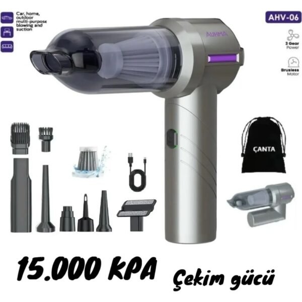 Auhma Ahv-01 Kablosuz Güçlü Araç Süpürgesi ve Hava Üfleyici | 15000PA Vakum Gücü | 3 Kademeli Hız | 9 Parça Aksesuar