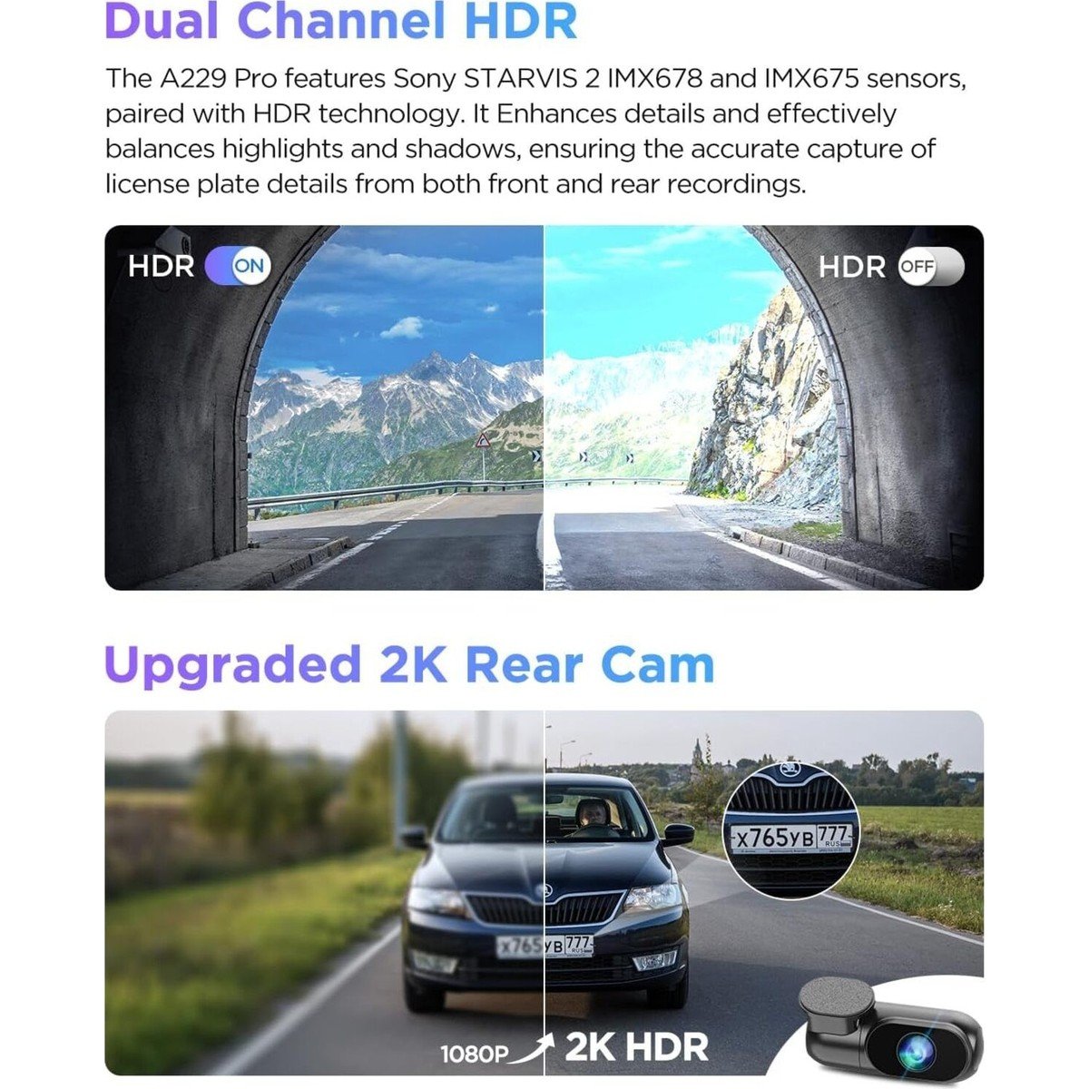 A229 Pro 4K Hdr Dash Cam, Dual Starvıs 2 Sensörler, 5ghz Wi-Fi, Gps, 24 Saat Park Izleme