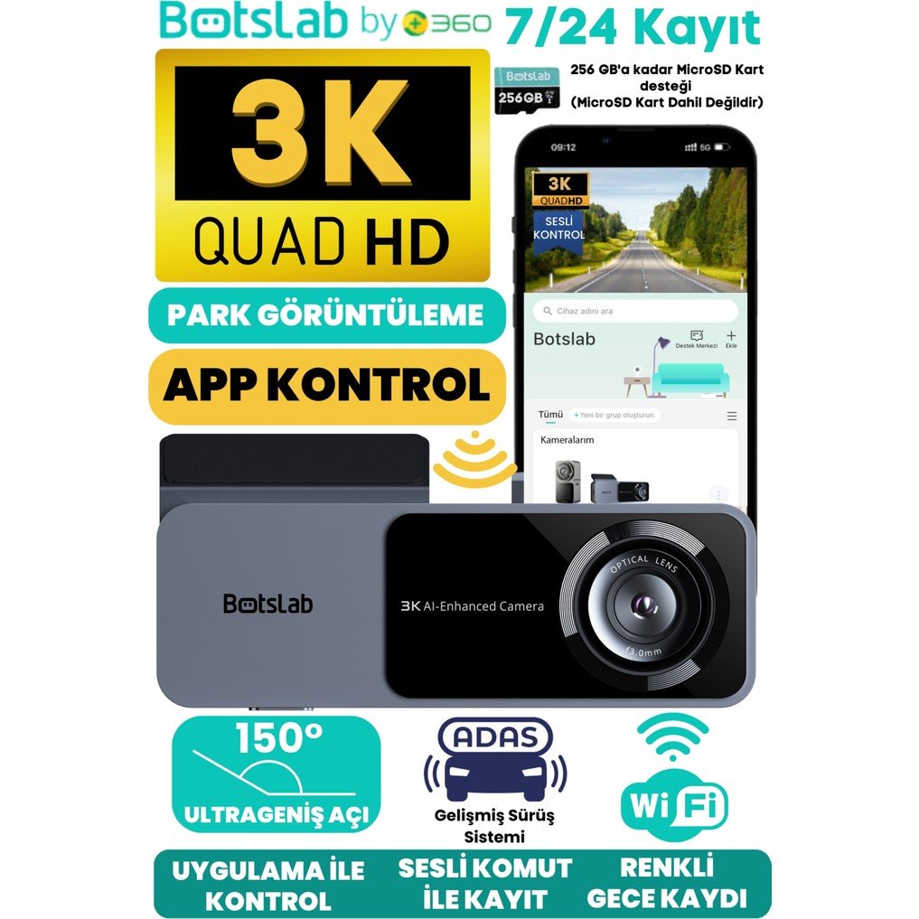 Botslab Hk50 Wi-fi 1620p 150° Ultra Geniş Açı Gece Görüşlü Akıllı Araç Içi kamera (2024)