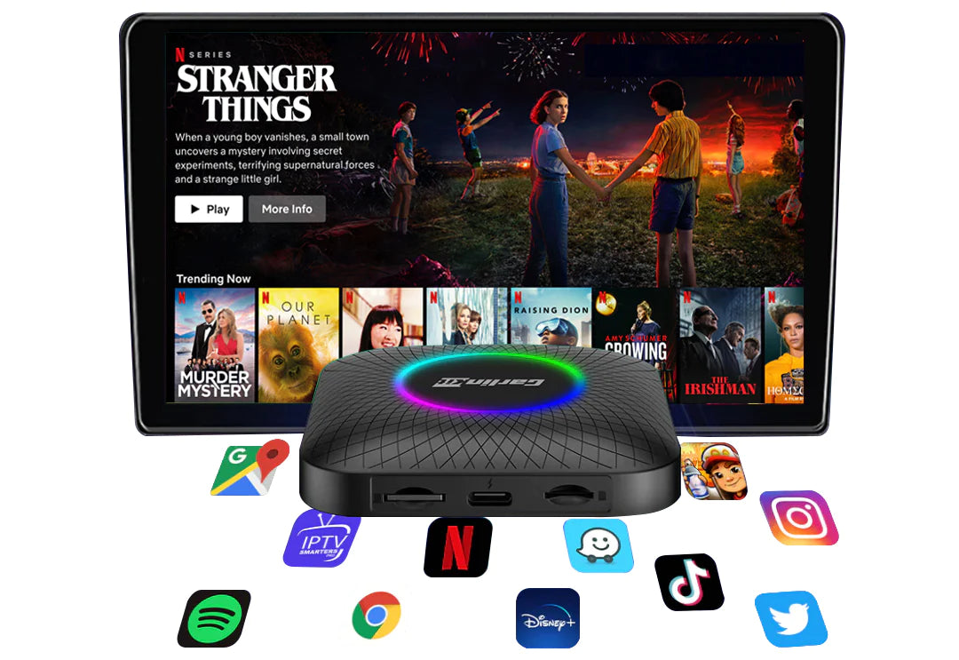 Carlinkit Tbox ( Max ) Ambient ile Google Play Store’daki sayısız uygulamaya erişebilirsiniz. İstediğiniz uygulamaları sadece “yükle” butonuna dokunarak indirip yükleyebilirsiniz. Dahili YouTube ve Netflix uygulamaları, en son şovları izlemenizi ve keyfini çıkarmanızı sağlar.