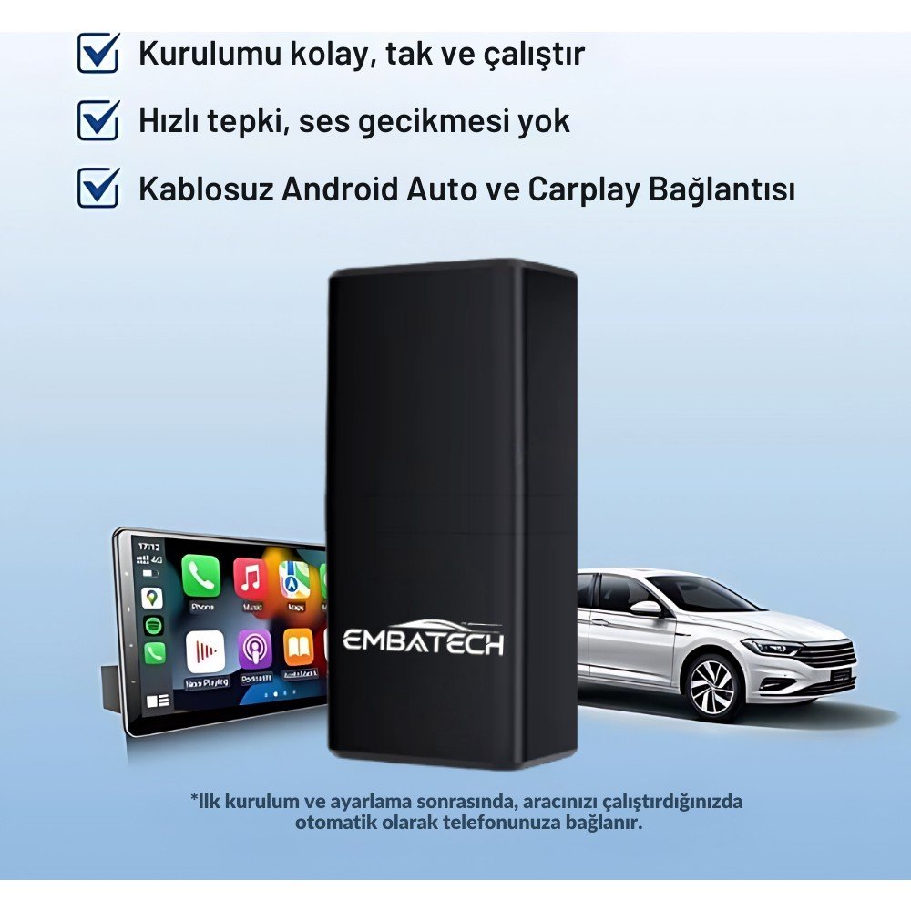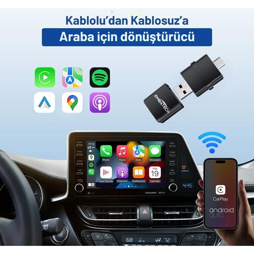 Embatech Araç Içi 2in1 Android ve Apple Cihazlar Için Kablosuz Android Auto ve Carplay Adaptörü (EMT-006)