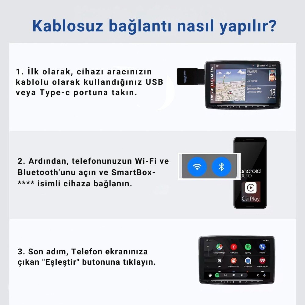 1. Cihazın Çalışabilmesi İçin Aracınızda Kablolu Carplay Olması Gerekmektedir.