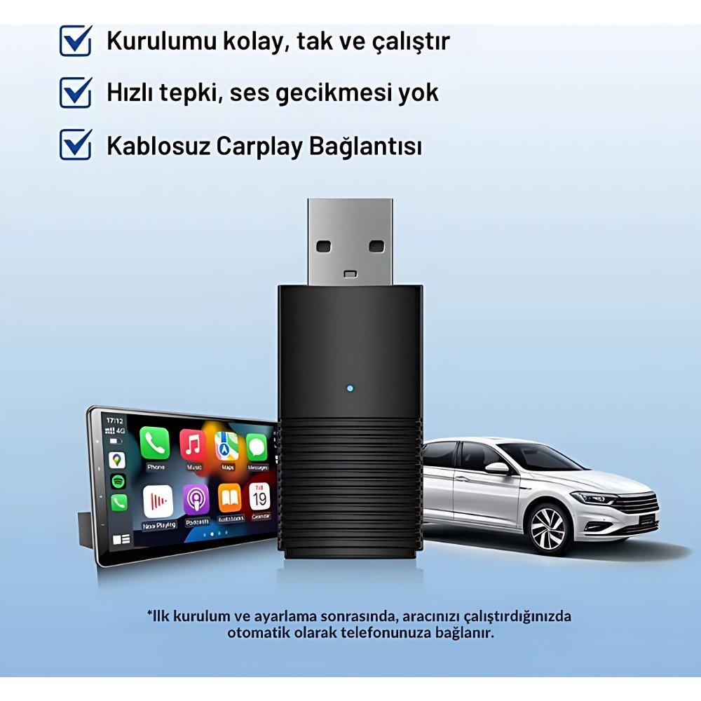 Embatech Araç Içi Apple Cihazlar Için Kablosuz Mini Carplay Adaptörü, Wireless Carplay Çevirici